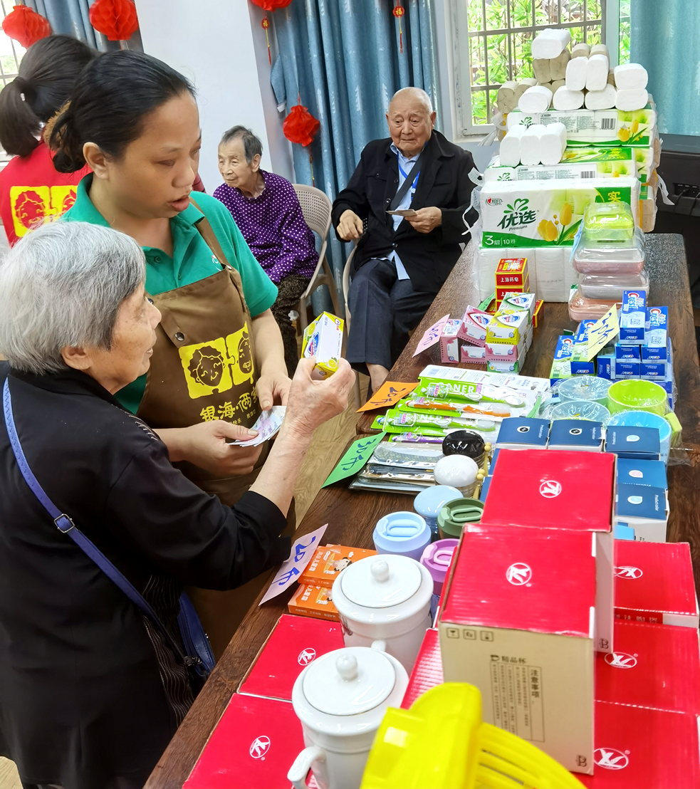 為善養(yǎng)老幸福銀行開(kāi)業(yè)啦!衛(wèi)生紙、牙刷20幣,牙膏30幣,香皂40幣。。。。