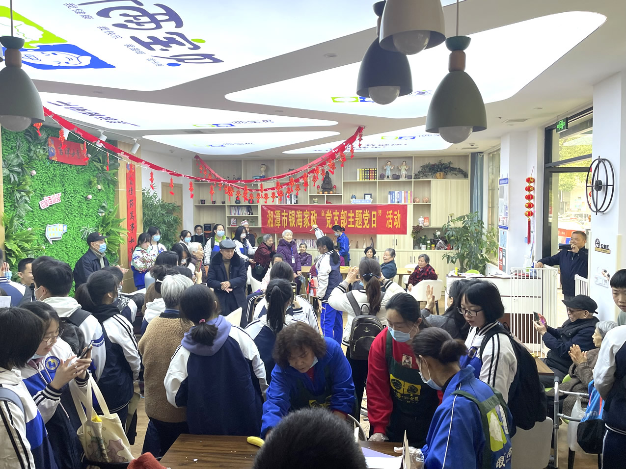 奉獻(xiàn)愛(ài)心,收獲希望。在3月5日這個(gè)特殊而又有紀(jì)念意義的日子里,湘潭市湘鋼一中初三級(jí)1907班50余名學(xué)生志愿者來(lái)到銀海倆寶貝窯灣康養(yǎng)中心內(nèi),為院內(nèi)的爺爺奶奶們送去了牛奶、水果、蛋糕等物品以及滿滿的祝福!