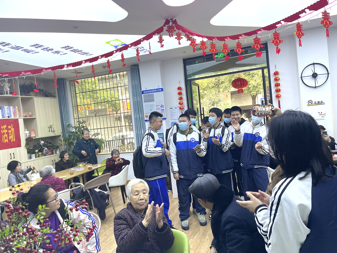 當(dāng)爺爺奶奶們看到一張張青春充滿活力的臉龐圍繞在他們周?chē)闹幸膊挥傻幂p快了許多。有同學(xué)自告奮勇,提出為爺爺奶奶表演節(jié)目,于是一幕幕精彩的畫(huà)面,輪番上演。熱情洋溢的拉丁舞,朝氣蓬勃的紅歌合唱,青春的力量無(wú)不感染著爺爺奶奶們,那一刻他們的激情也被點(diǎn)燃了,他們忘記了吃飯的時(shí)間,甚至不覺(jué)得身體疲憊,最后在依依不舍的掌聲中歡送走了這群活力滿滿的孩子們。
