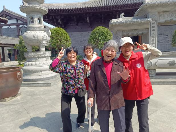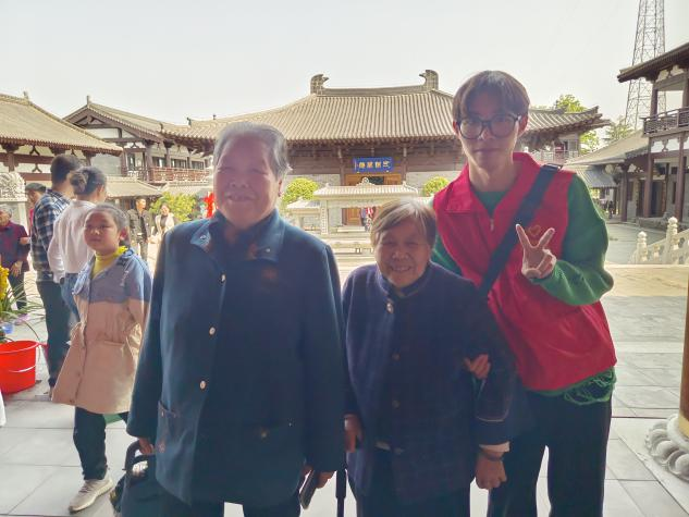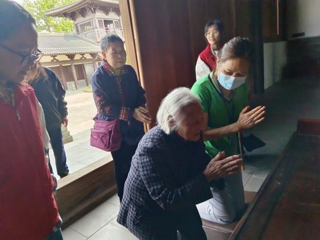 爺爺奶奶在志愿者們的攙扶和幫助下,第一次走進寺門,一步步走在青石板面,感受它的文化與傳承。