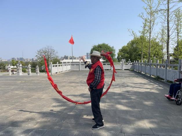 你看,86歲的周爺爺,揮舞著彩帶健碩有力!