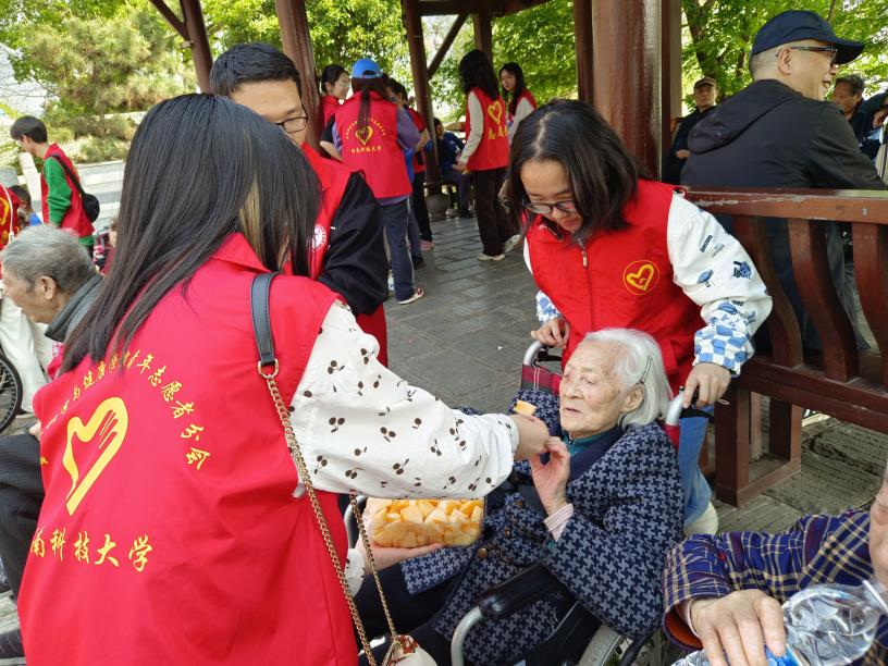 于是,倆寶貝的爺爺奶奶們說走就走,與湖南科技大學生命科學與健康學院青年志愿者分會的23名大學生志愿者們來了一場浪漫的約會。